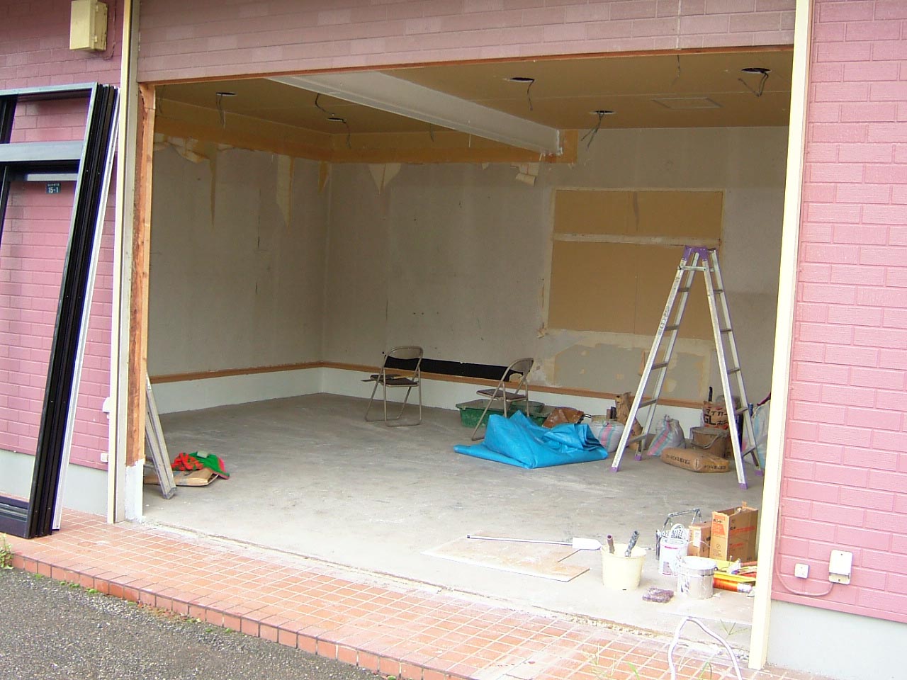 階段下サッシ工事