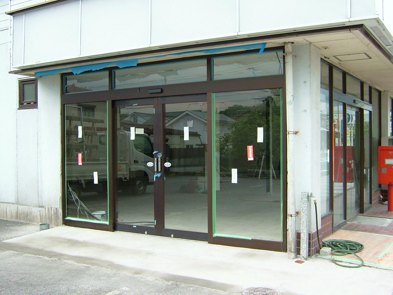 テナントの窓を撤去し、自動ドアを取り付けする工事を行いました。