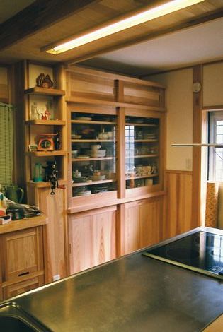 杉材90% 桧材5% 松材5% 新建材0% 内装すべて、大工工事。既製品0% 軸組手刻プレカット0% 設計は施主と大工と各職方 設計士0%