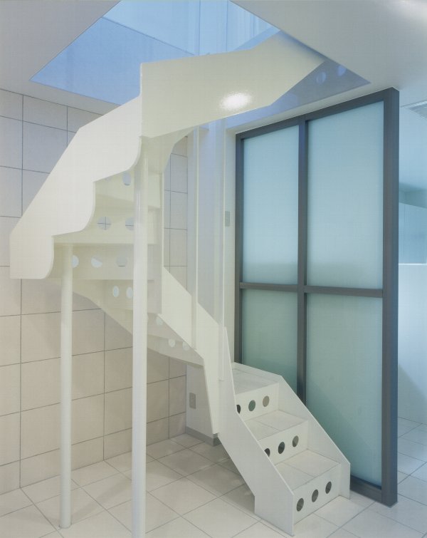 1階に店舗、2・3・4階が賃貸物件である築20年以上たった建物を改修した計画。鉄骨の耐火被覆のアスベスト調査から始り、検査の結果、含有量が微細だった為除去工事無しで着工できた。1・2階間の床に開口を設けて階段を設置して2階を応接室として配置した。3・4階はおのおの違うデザインコンセプトを持って内装計画を施した。