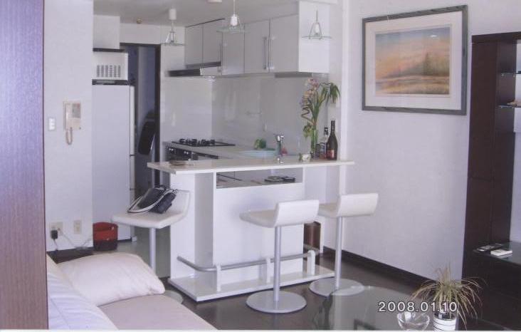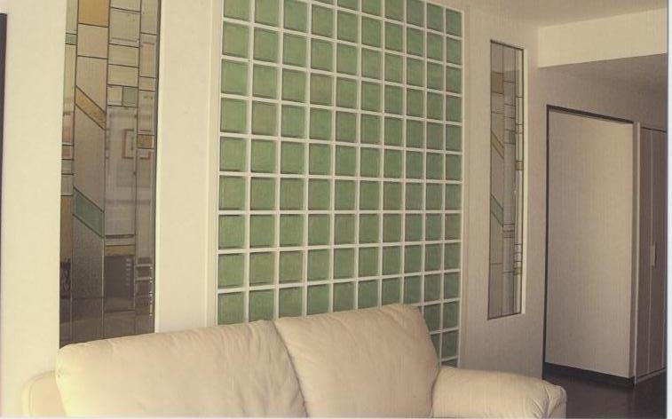 寝室とリビングの間仕切りを無くし、ガラスブロックとステンドガラスで目隠しを作りました。 キッチンも対面にし、白とグリーンとブラウンにこだわりました。