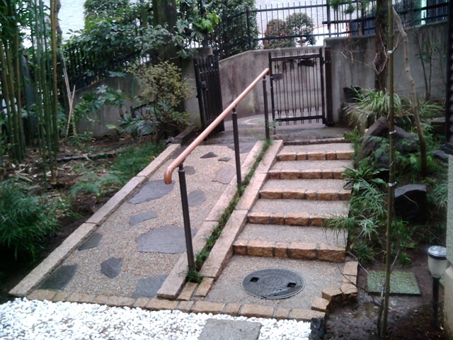 和風にリガーデン 洗い出しスロープと階段 介助手すり付き