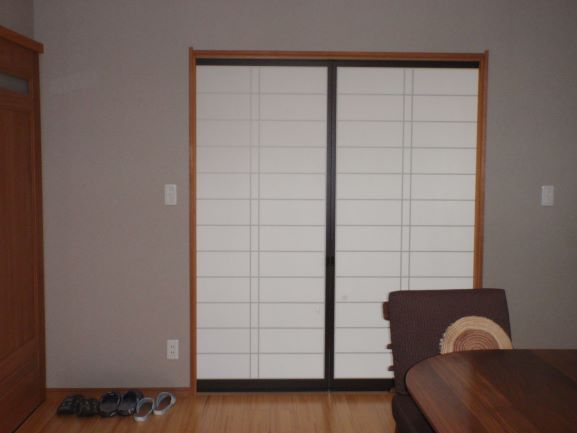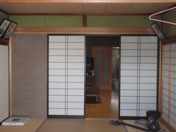 床面、内壁面すべて解体、筋交い、金物現基準で入れ補強、断熱材入れ替え、和室と洋間を別けていた通路を洋間分として使用。中仕切は、建具のみで使用していたが6尺巾開口とし、洋間に落ち着きをもたせた。和室・洋室ともに使い勝手が良くなり満足していただいた。