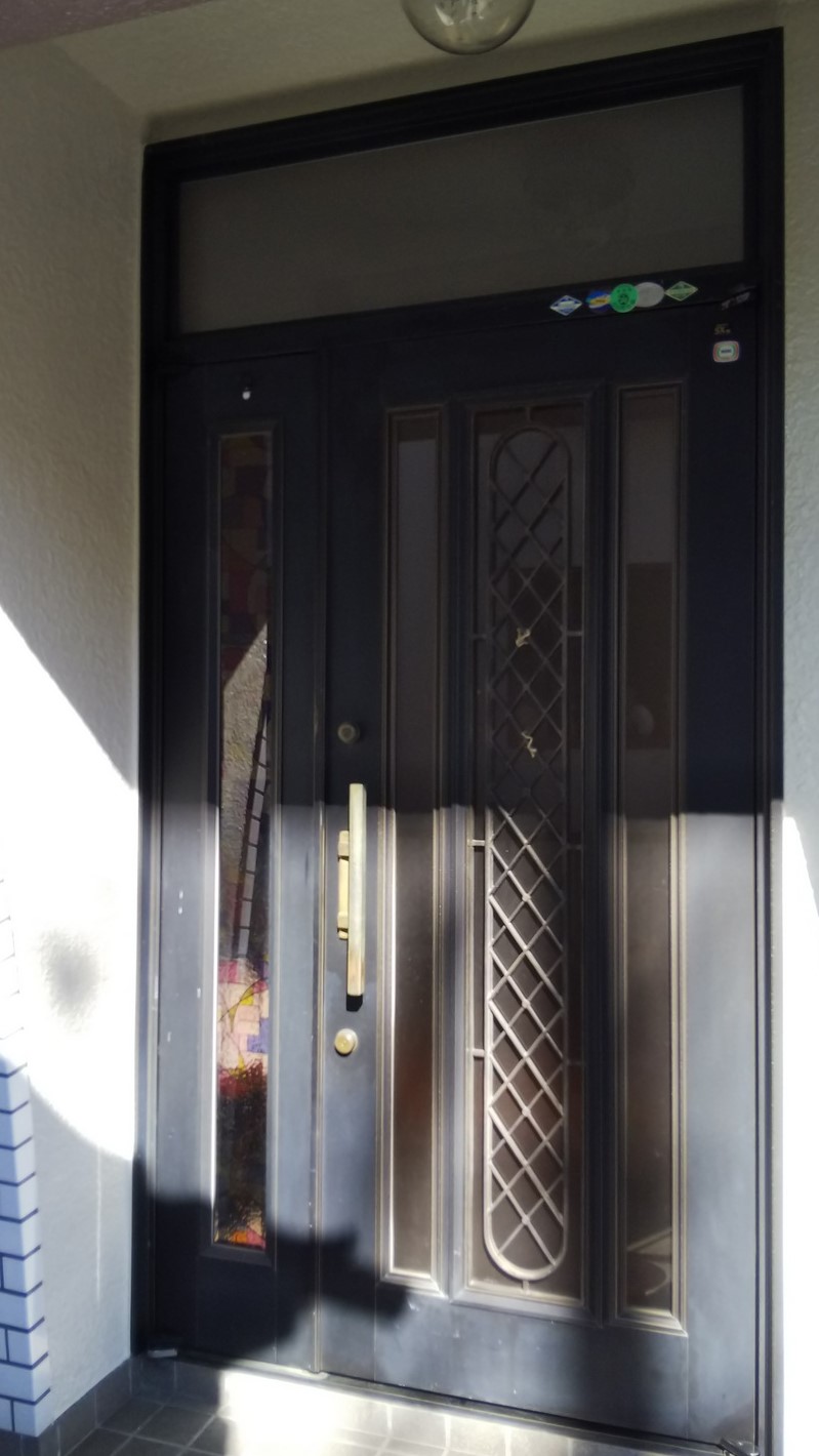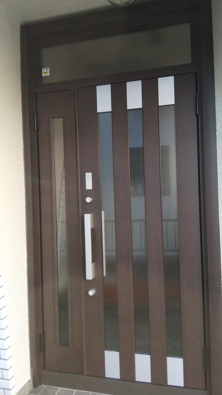 古く色あせてしまったアルミ製ドアを木目調のアルミ製ドアに交換しました