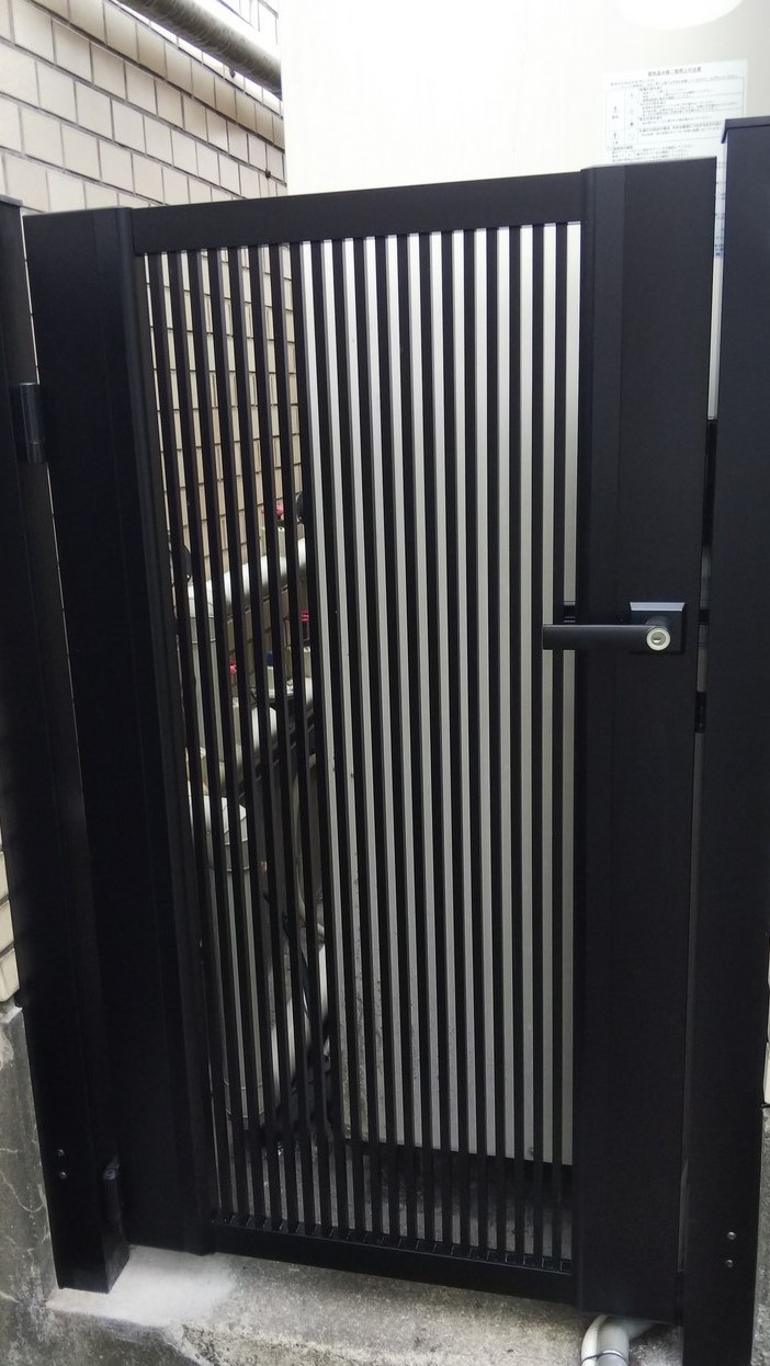 腐食して閉まらなくなったスチール製門扉をアルミ製の扉に交換しました