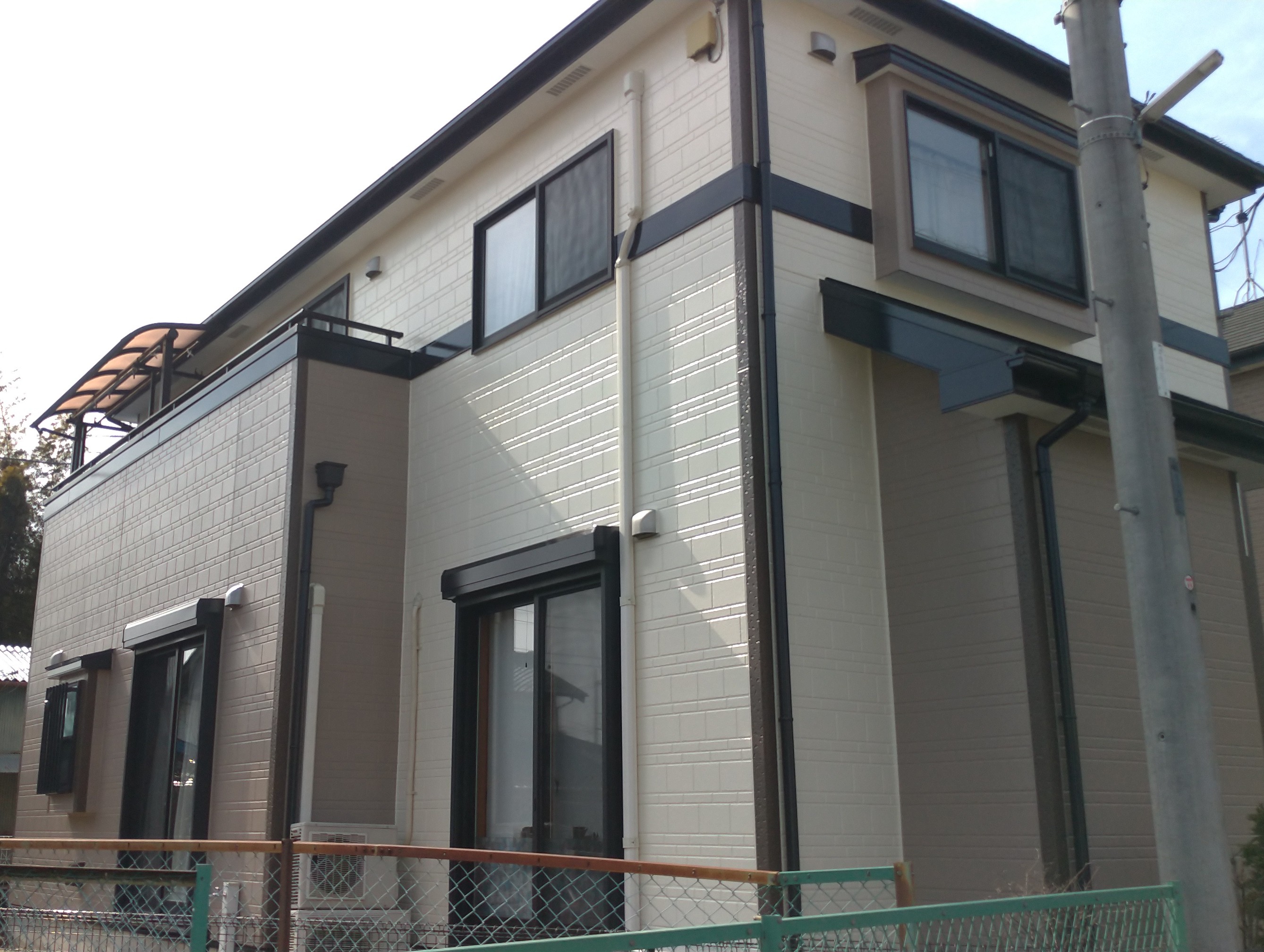 埼玉県川越市今福で外壁と屋根の塗り替えリフォームを行いました。 ■使用塗料 ・屋根 メーカー:アステックペイント 製品名:無機ハイブリットコートJY-IR 色:9101スチールグレー ・外壁 メーカー:アステックペイント 製品名:フッ素REVO1000-IR ベースカラー:8091ブロークンホワイト アクセントカラー1:8083C/Bベイジュ アクセントカラー2:8074C/Bアイアンバーグ