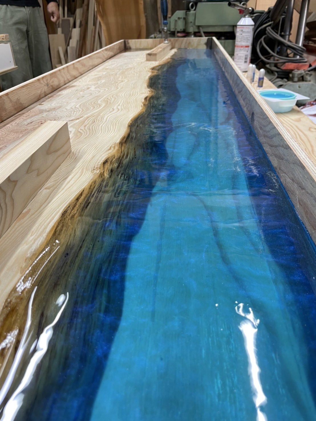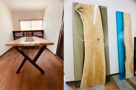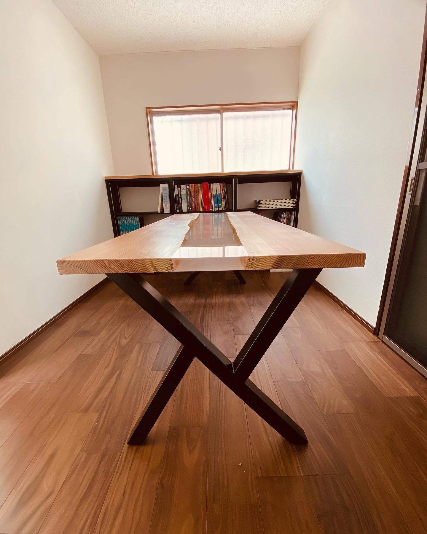 367 レジンテーブル 有限会社 神山工務店 デザインから製作までご希望にあわせて製作致します。 レジンの色や木材の種類、用途など打ち合わせを行いながら、世界でたった一つのレジンテーブルを製作致します。 レジン流し込み 一枚板レジン 金額 ¥150000~ 工事期間 2週間~