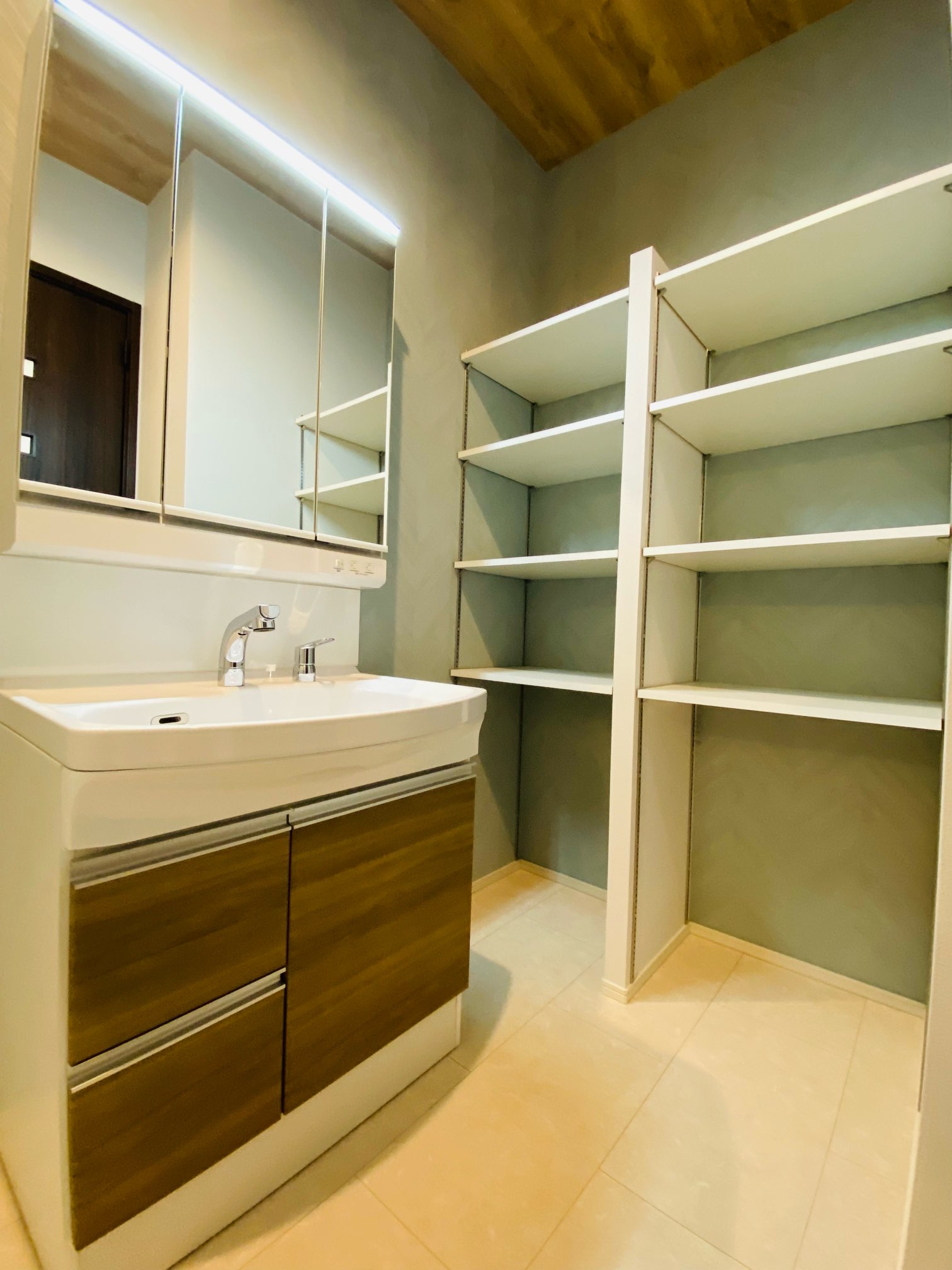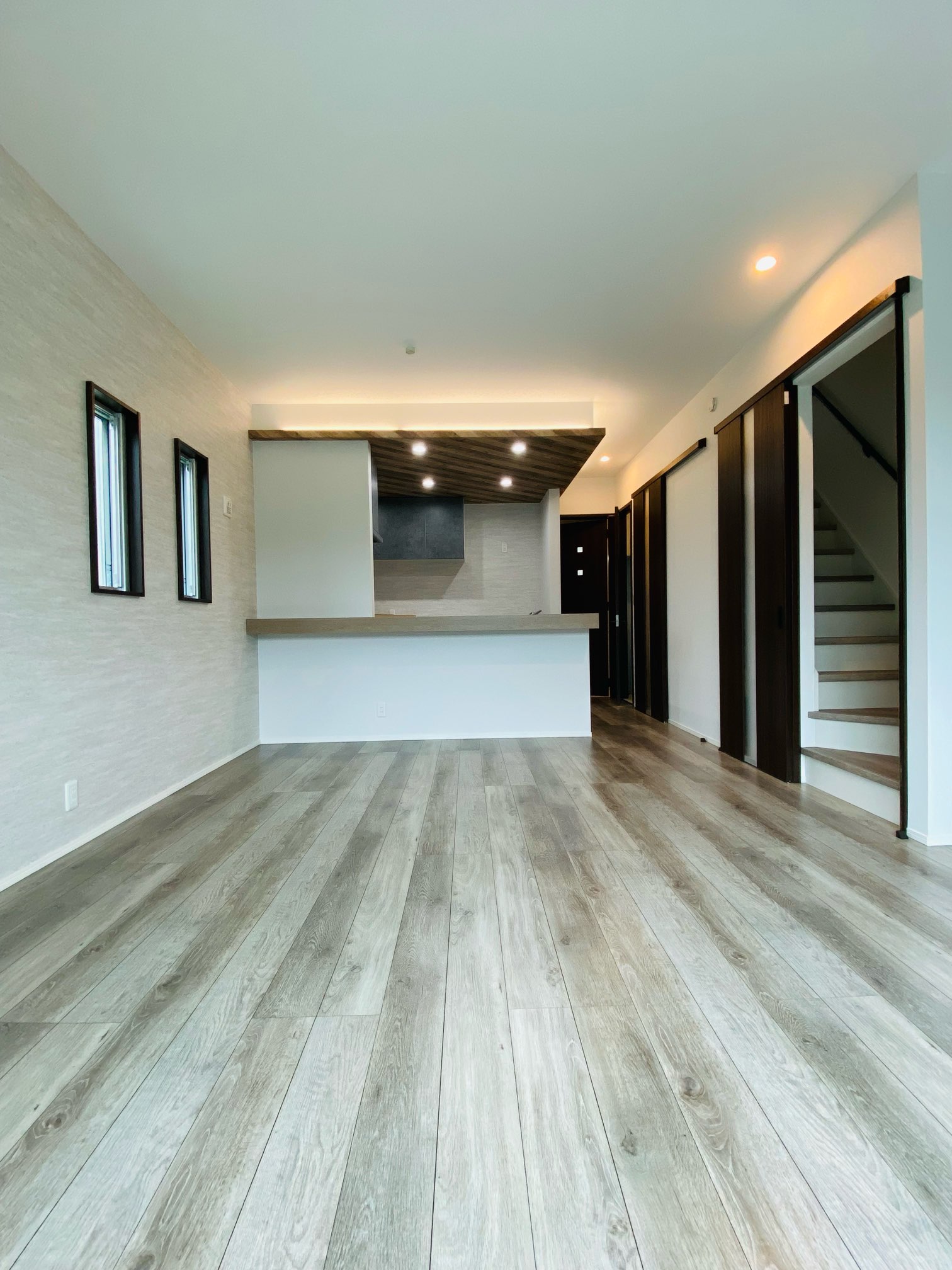 みなさんこんにちわ♪ こちらの物件は、上尾市柏座の新築住宅 3階建て4LDKですଘ(੭ˊ꒳ˋ)੭✧ 広々リビング★キッチン部分は、折下げ天井&斜めの木目調ストライプがとってもオシャレなカフェ風のキッチンに仕上がりました♪ 洗面室には可動棚があり、たっぷり収納が可能です♡(。☌ᴗ☌。)