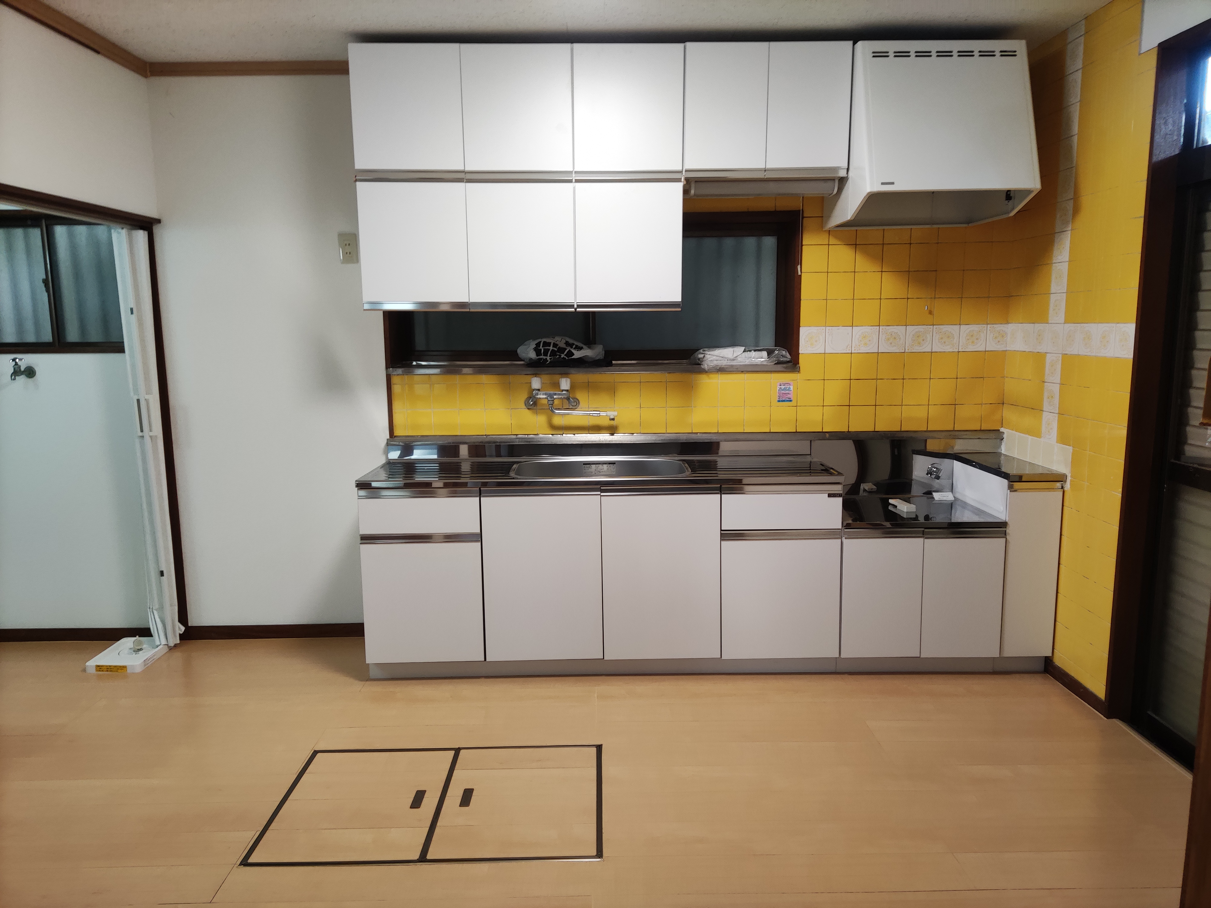 401 築40年の借家のリノべーション 根岸塗装店 キッチン、浴室、洗面所の器具交換、劣化した床の下地からのフローリングの張替を、行ないました。 場所 東京都練馬区 工事概要 内装、外装のリノべーション 金額 250万 工事期間 60日