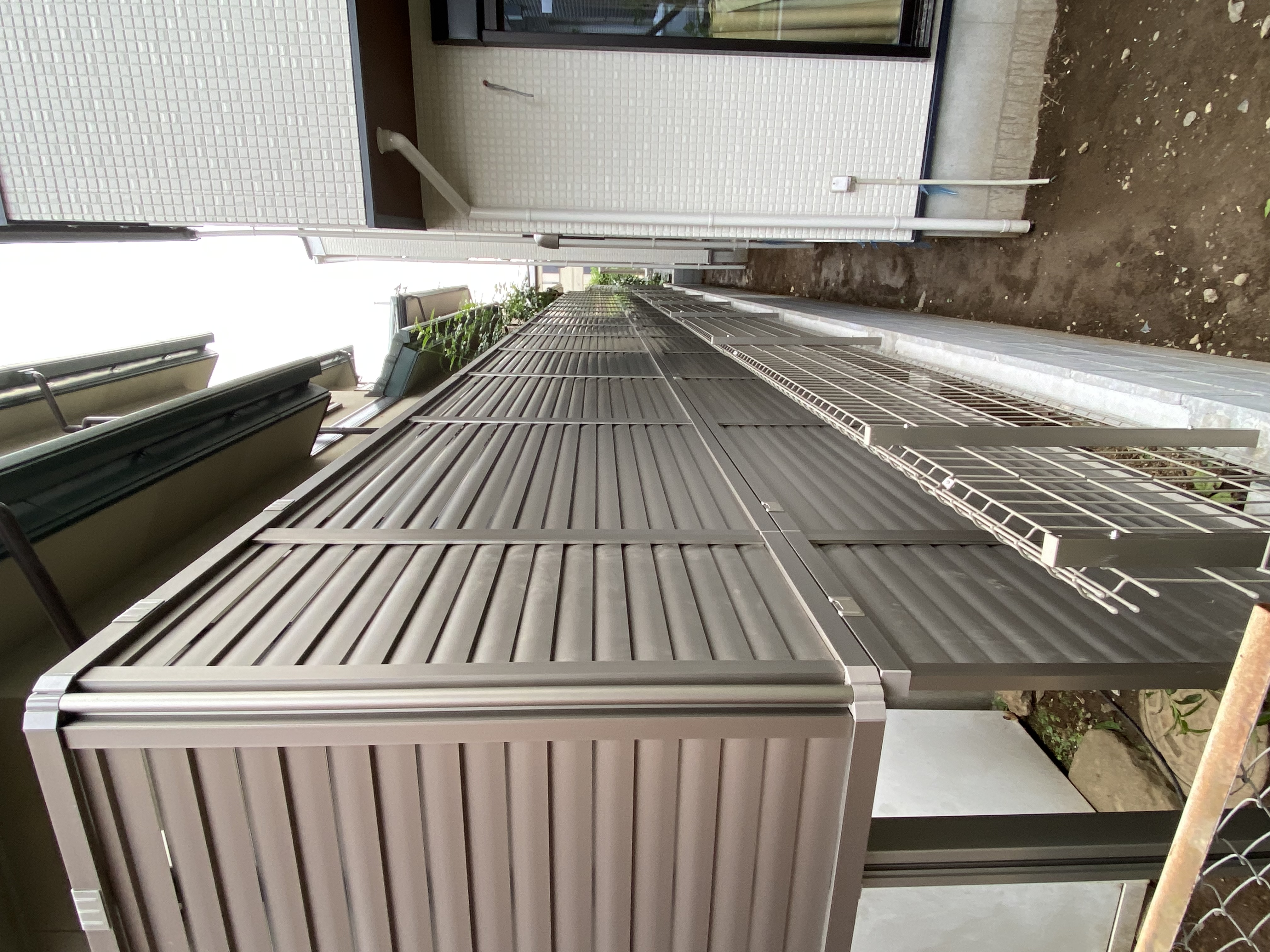 410 フェンス工事 株式会社あかつき造園 隣地に新築が建つのでプライバシー保護に、とのご要望でした。 リクシルの多段フェンスで明るく、ルーバータイプで目隠しを兼ねながら風通しもあります。 工事期間 2021年6月施工