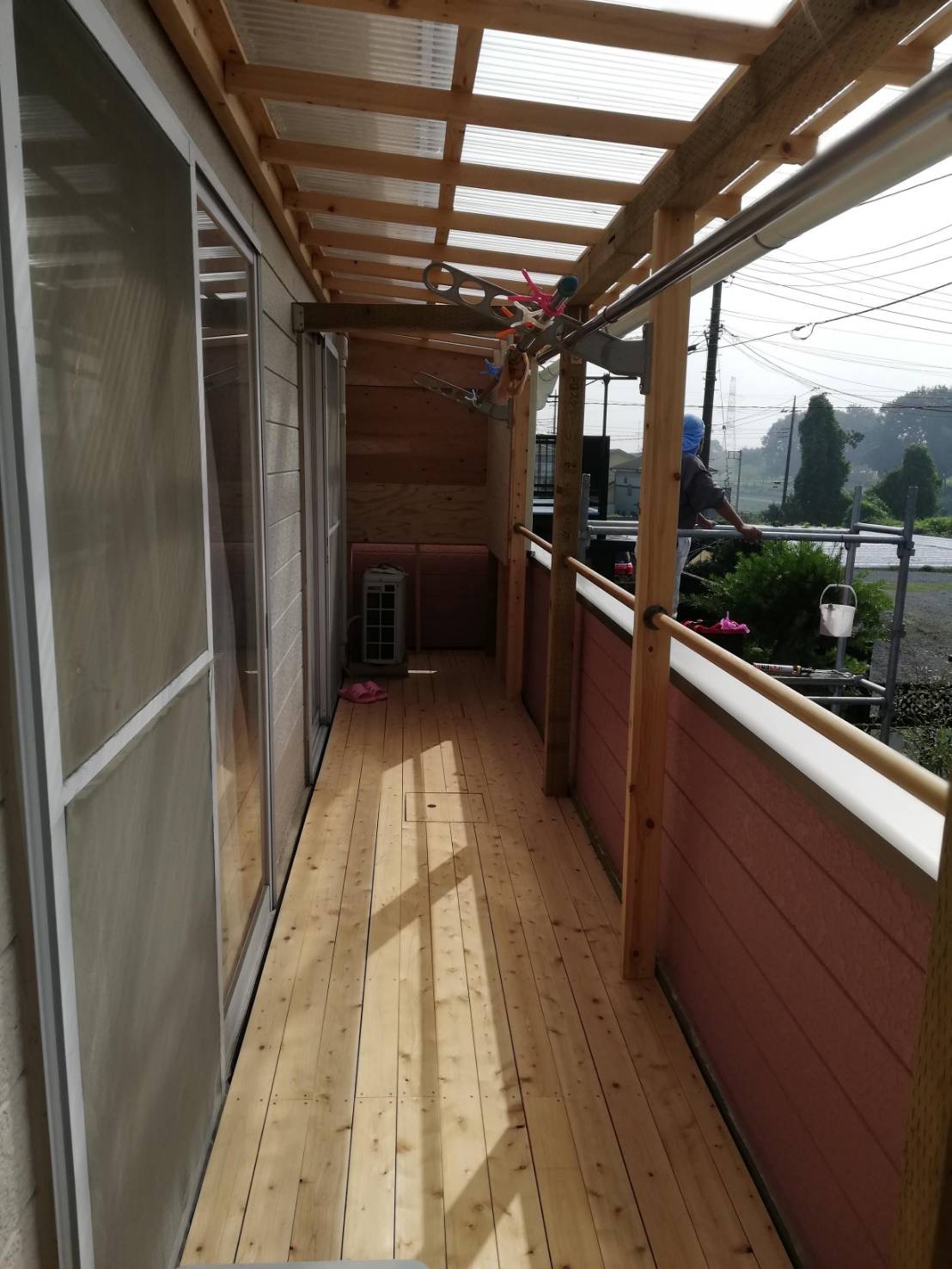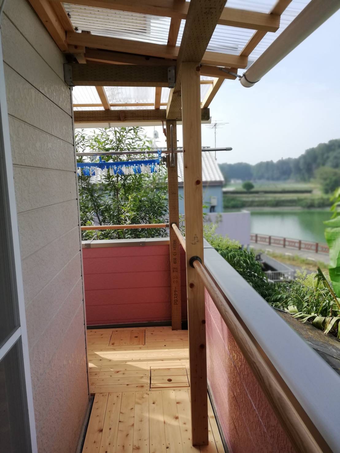飼い犬、(保護犬(の為の遊び場の設置の依頼、雨風をしのぐ様に、総ヒノキで床と屋根を作成しました。
