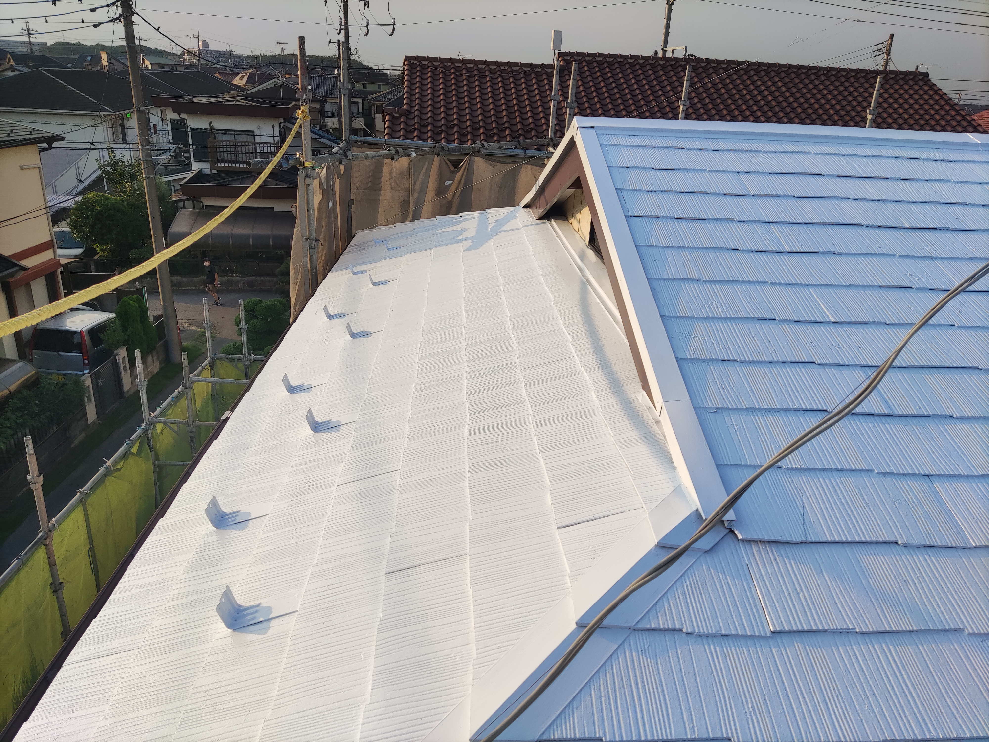 自宅近くの、お客様からの塗装依頼でした。今年の夏も御多分にもれず灼熱の夏でした。なんとかして欲しいと言う依頼で、遮熱塗料で施工しました。異論がありましたが、遮熱効果のあるホワイト系統にしました。