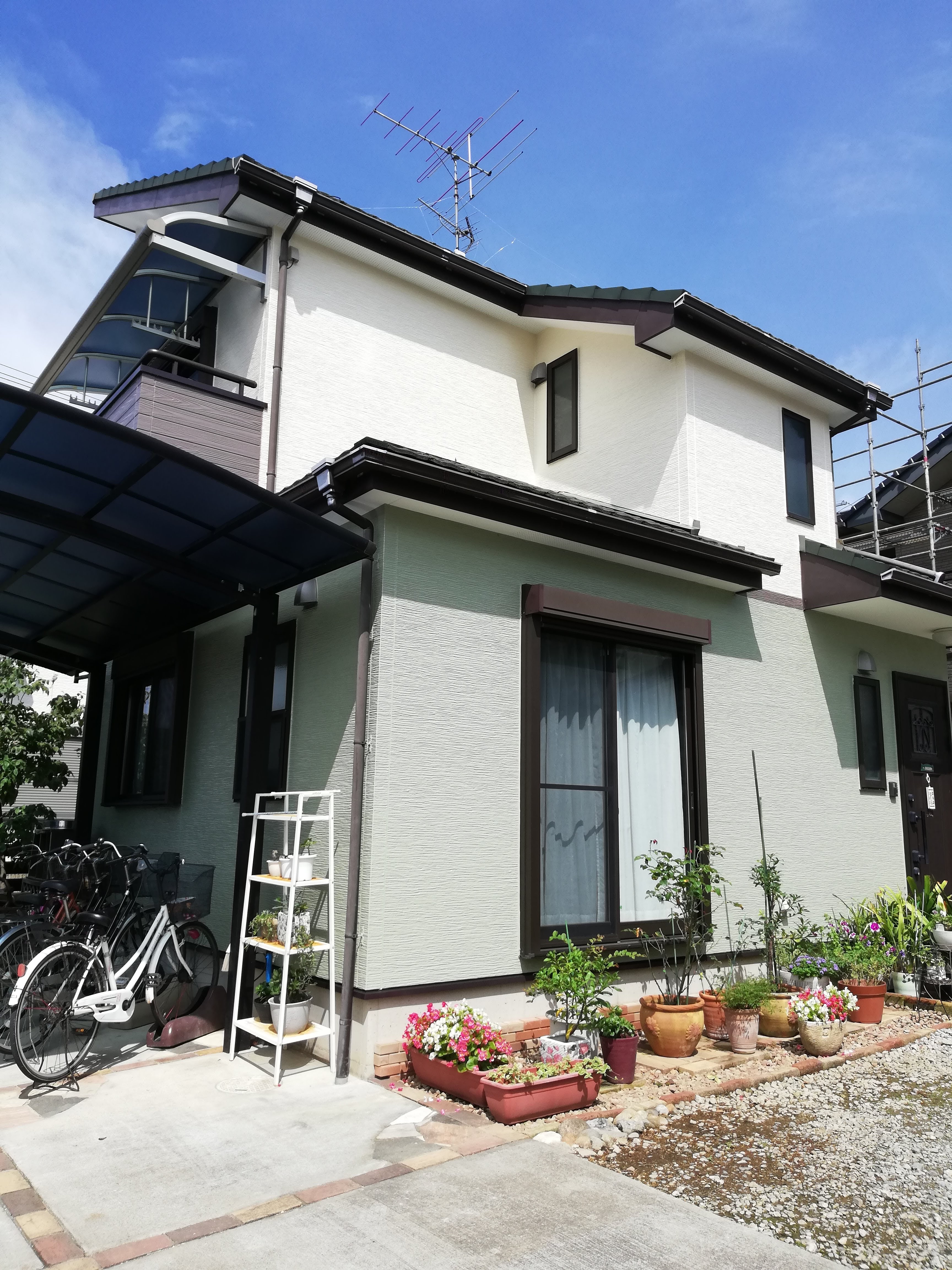 428 外壁の塗替。 根岸塗装店 築10年の住宅の塗替え施工。私のお客様のご紹介での現場です。 クーラー配管ダクトを外して、壁の塗装。 古いコーキング目地の除去。 場所 埼玉県鴻巣市 補足事項 2色塗装で仕上げです。 使用塗料SK化研ブレミア厶弾性シリコン使用。