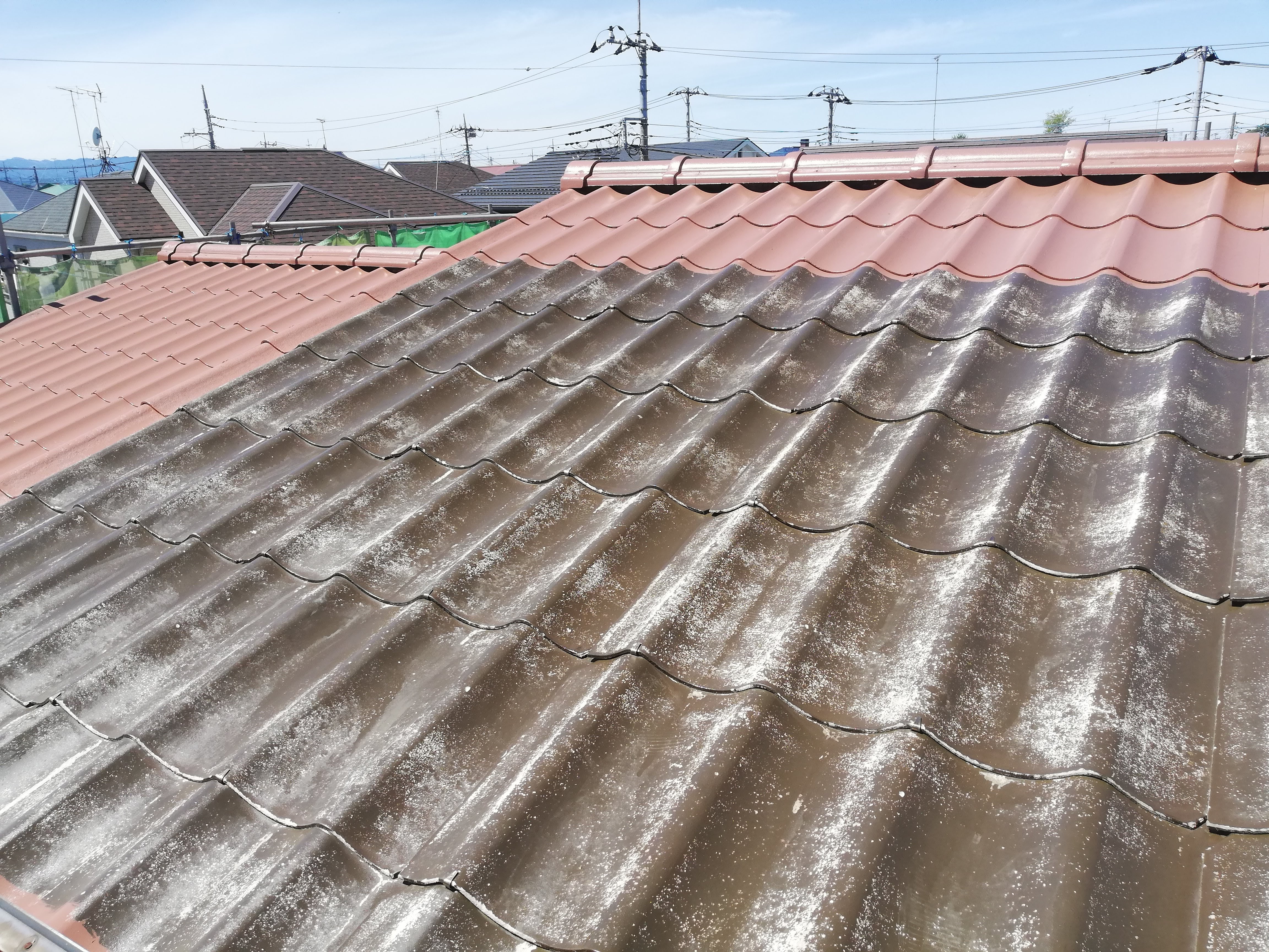 古くなった屋根の塗替え施工。