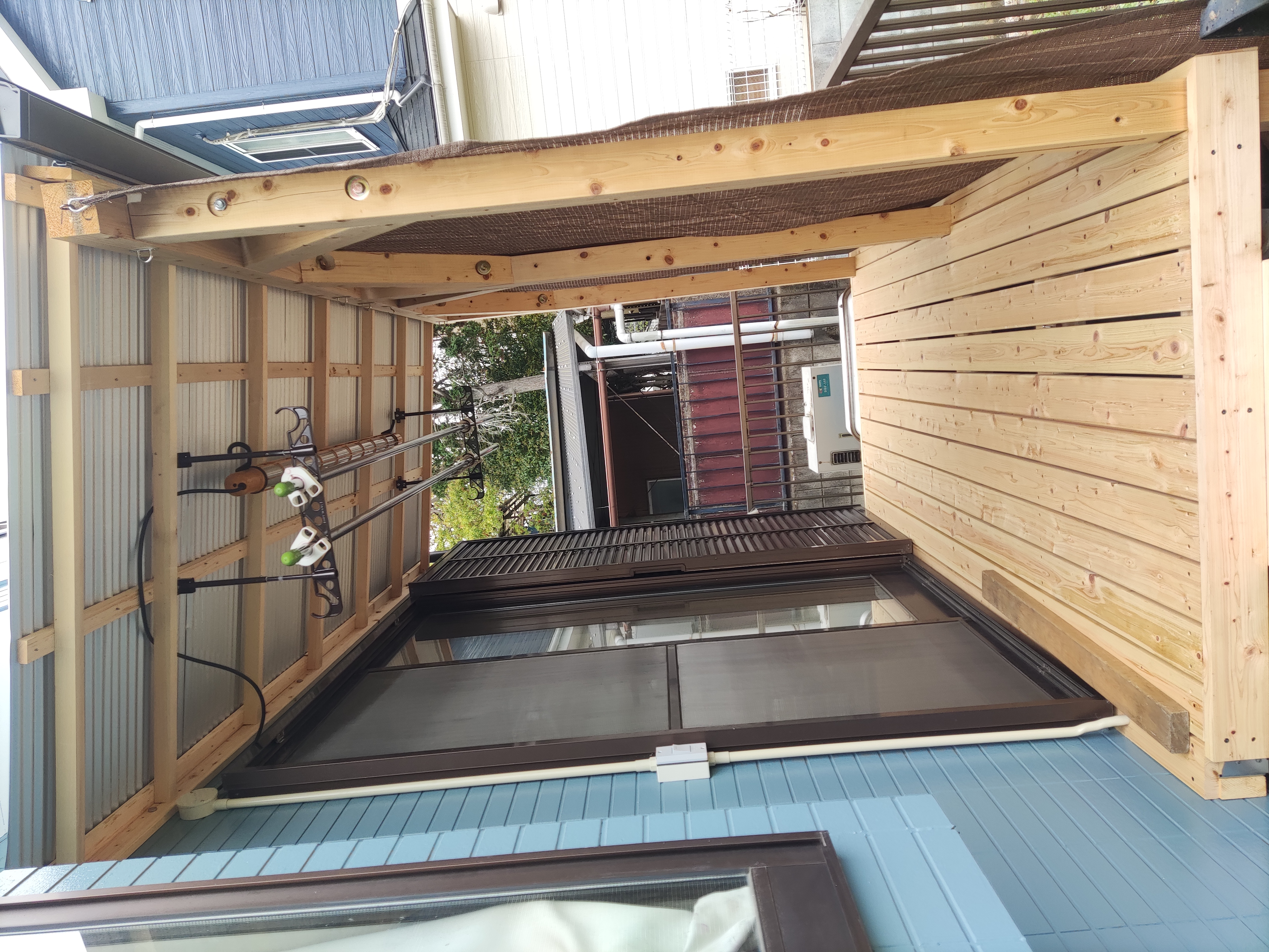 新設の総ヒノキ、テラスと屋根壁塗装でリフレッシユ!