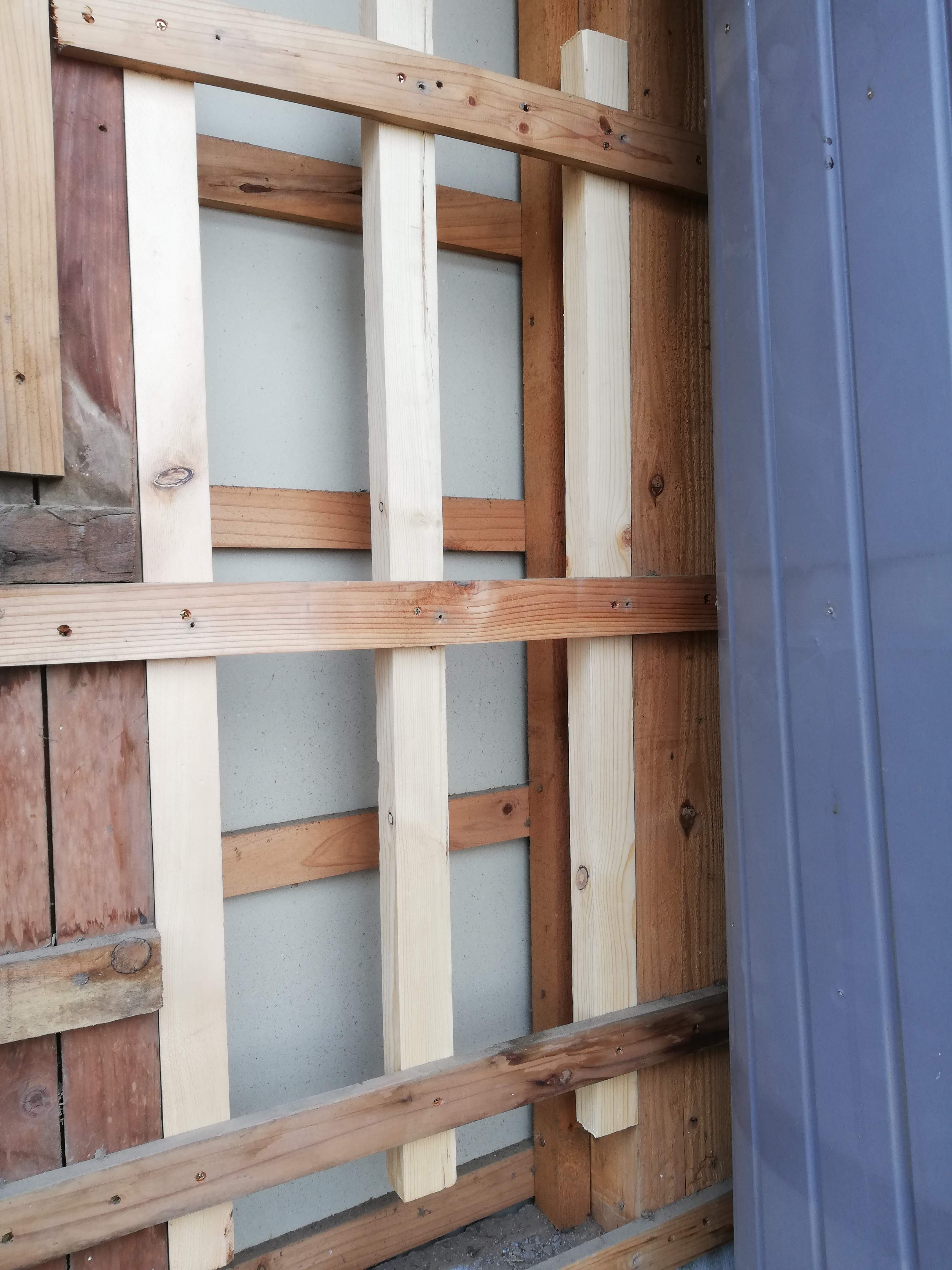 436 鉄板サイディングに張替。 根岸塗装店 昔施工された初期のノダサイディングの張替です。風雨に弱い製品で、めくれ、そりが発生した為、張替を依頼されました。他の部分にあわせ木目調の鉄板サイディングにしました。 剥がれ、めくれたサイディング 下地の施工です。 場所 埼玉県川越市