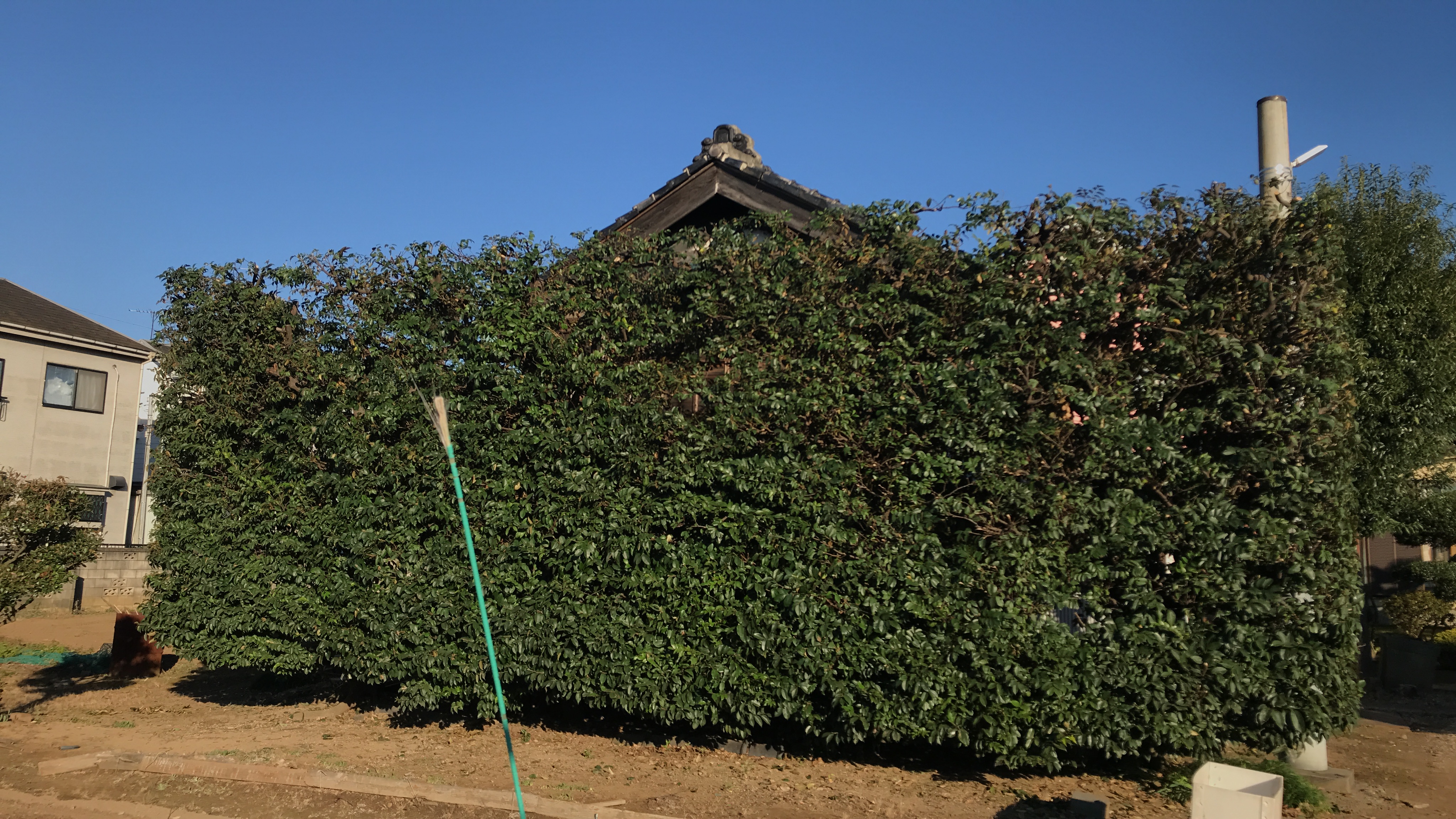 農家様の庭木のお手入れを承りました。 シイの木の高垣のお手入れです。 伸びを抑制する為、刈り込んだ後、透かし剪定を行いました。 「 綺麗なお庭で新年を迎えられると気持ちが良い 」と喜んで頂けました。 今年も11月に入り、年内の庭木のお手入れの繁忙期に入りました。 12月中旬以降、日程に空きが御座います。 洋風、和風、農家様から分譲団地までプロの庭木のお手入れ承ります。
