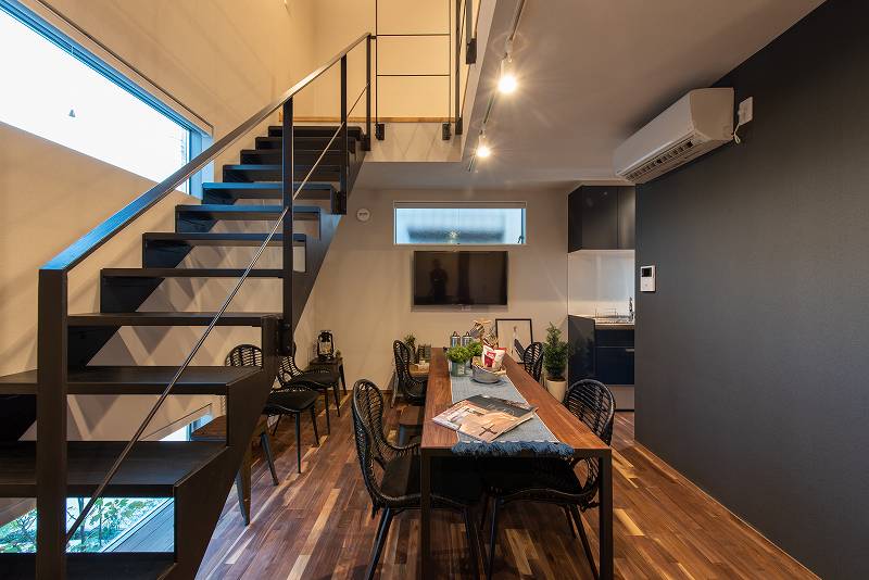 インダストリアルな空間にアイアンの階段でカッコよさを演出