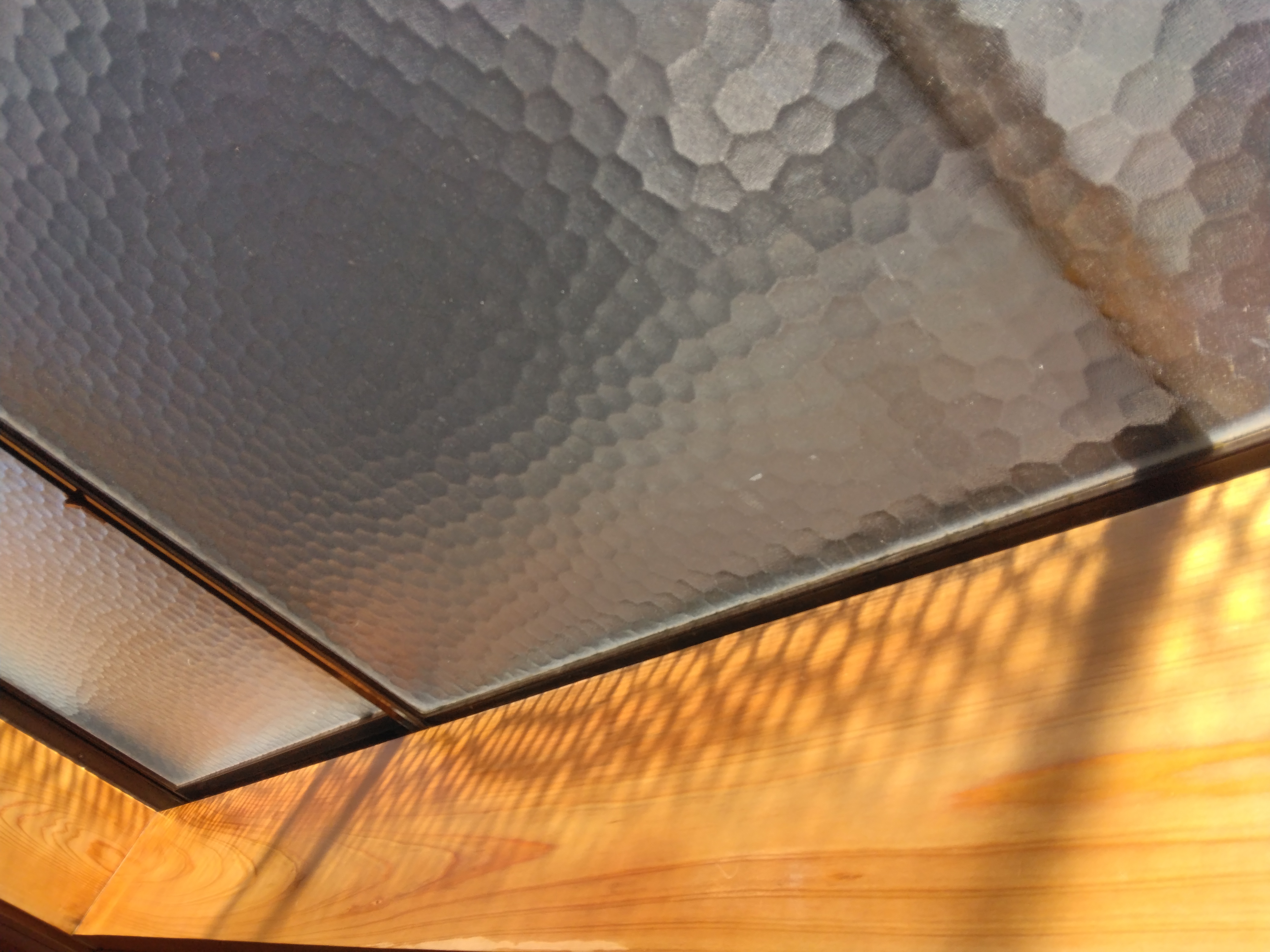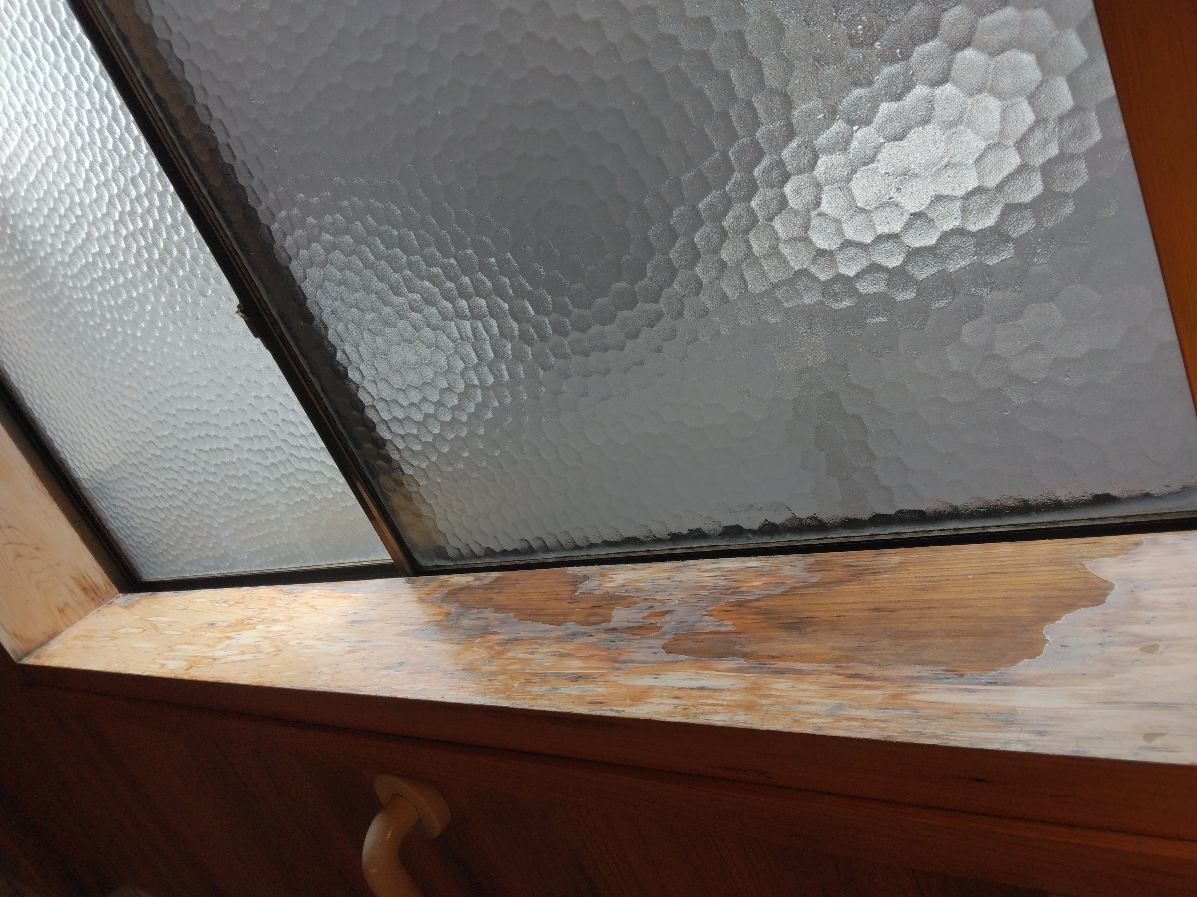 桧窓枠の液体ガラス、再施工。一度研磨し、全て剥がした上で再塗装しました。