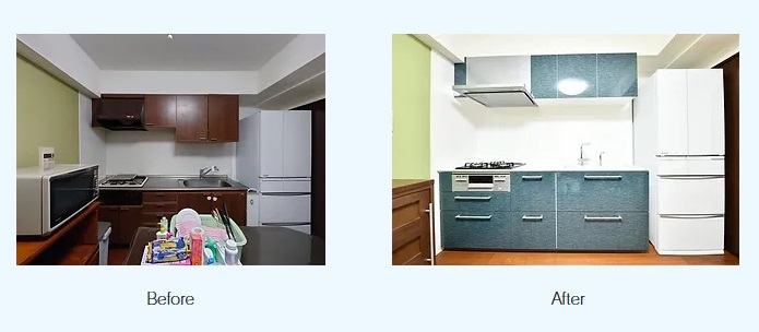 換気扇のお掃除が大変でお悩みだったお客様にお手入れ簡単な換気扇をご提案させていただきました。とてもセンスのいいお客様は色にお悩みでした。お客様をショールームにお連れ致しお客様が納得のいく高級感と美しさのあるお色お選ばれました。御主人様の換気扇に頭をぶつけてしまう問題は換気扇や吊り戸部分の壁がふかしてあったため通常より換気扇が前に出ていた為におきていました。今回は壁全体をふかすことで通常の出幅で収めることにより改善をしました。