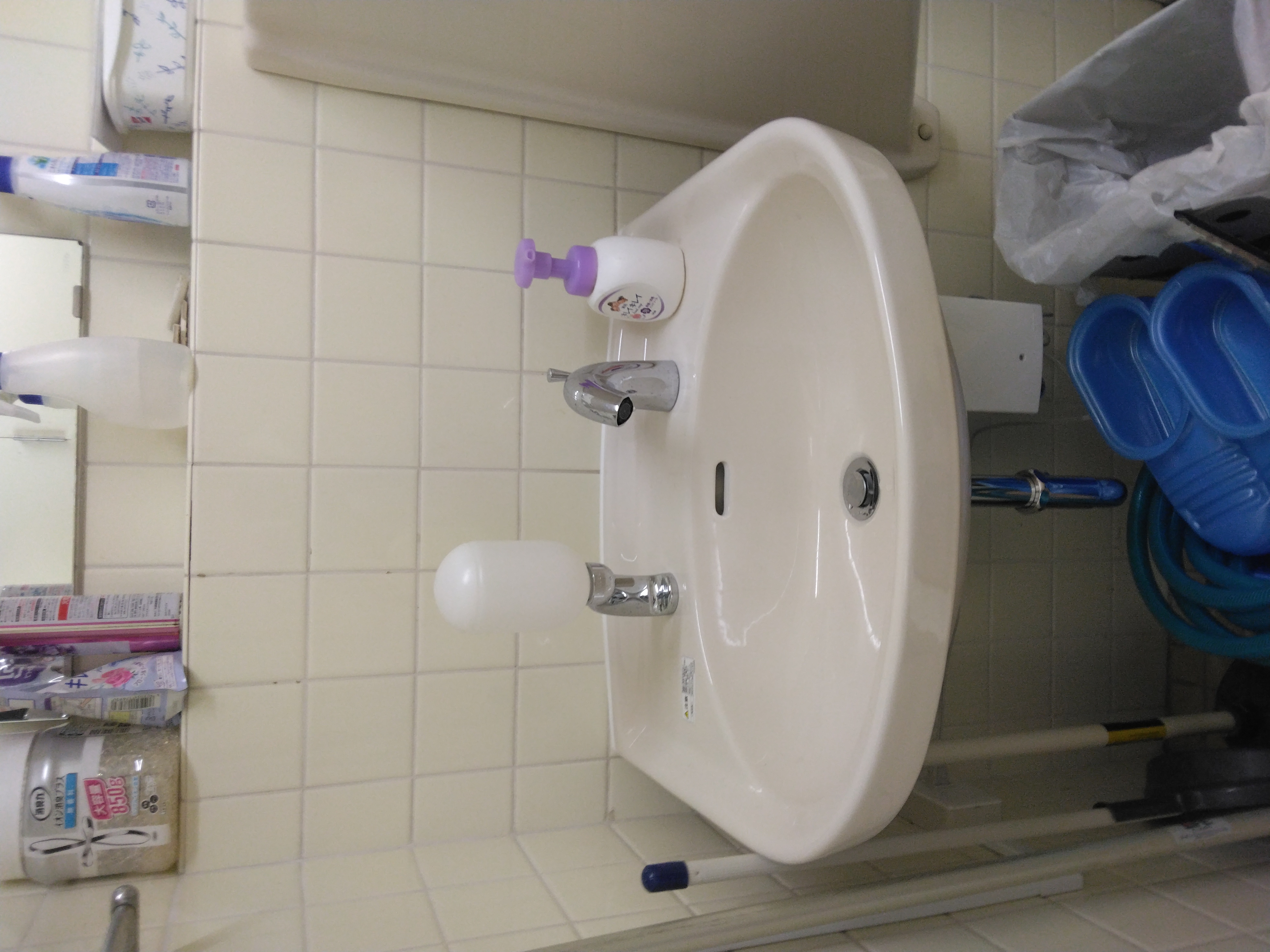 551 自動洗浄水栓交換工事 (有)本山企画 元々、手動の水栓が付いてたのを、水漏れを機に、自動水栓へと交換しました。洗面も少し小さくなり、脇にスペースが出来ました。 改修前 場所 川越市 工事期間 1