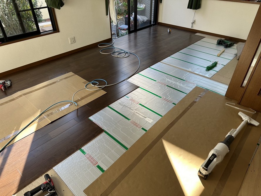 冬になるので家が暖かくなるよう費用を抑えるために上貼り施工を致しました。