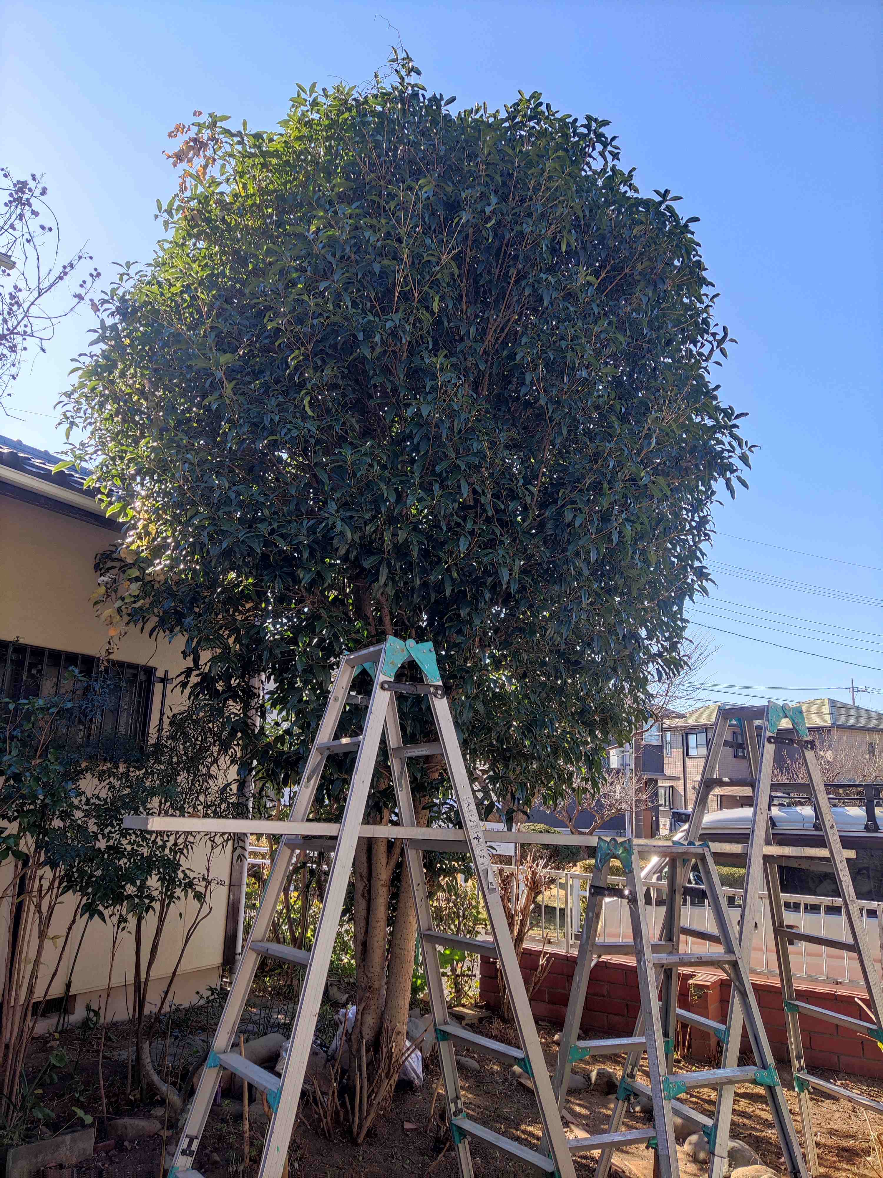 2年前に外壁塗装をしたお客様です。高さ4メートルのキンモクセイや、柿、バラ、それにヤブカラシが生茂り手入れが大変だと言う事で、スッキリさせました。
