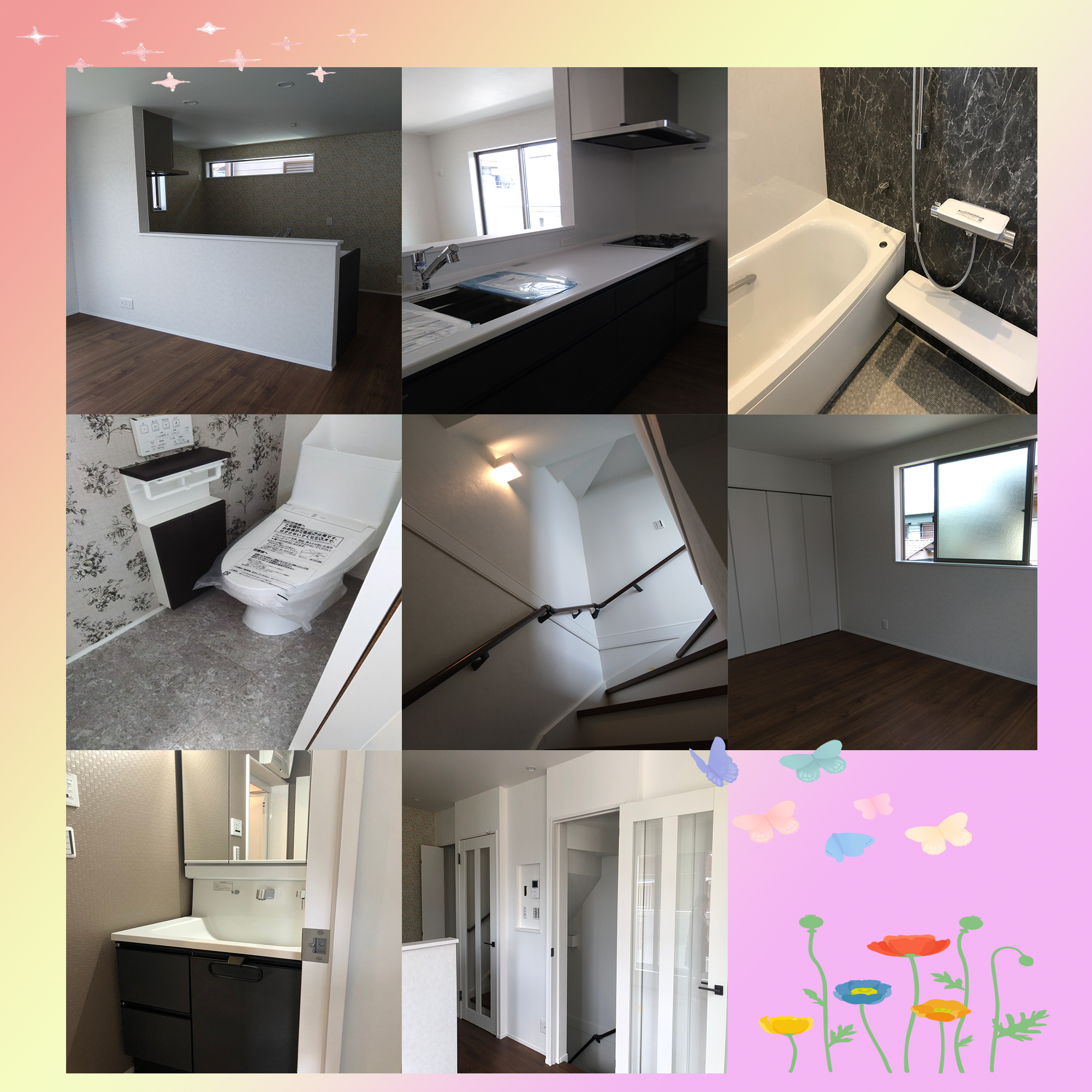 皆さまこんにちは(^^)/ 今回ご紹介いたします物件は新築注文住宅です! 3階建て+屋上階。 屋上では周りの視界を気にせずにゆっくりくつろげる空間になります。 夏には花火が見られるそうで羨ましい(´▽`*) リビングルームや居室は窓を開けると気持ちの良い風が良く通り、 快適に過ごせます。 好みの壁紙を選んで、様々な雰囲気のお部屋や水回りになり、 とても素敵な家が出来上がりました(^_-)-☆。 では次回をお楽しみに(*^^)v