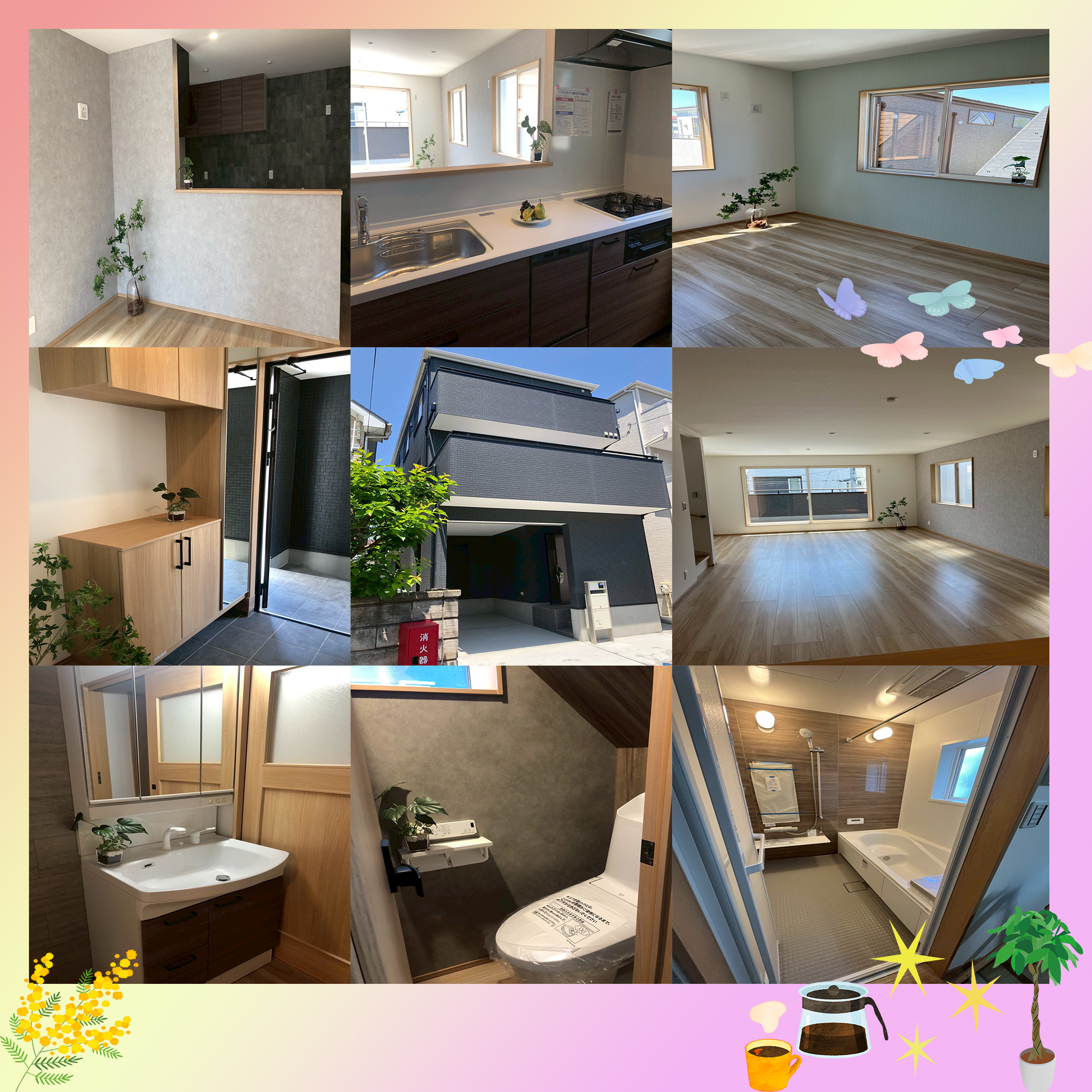 みなさんこんにちは(^^)/ 今回ご紹介します物件は新築建売住宅 陽当りの良いビルトイン車庫付き3階建てになります。 LDKはとにかく広々、窓がとても大きいので太陽の光がたくさん 入ってあったかい(´▽`*) 更に床暖房がついてますので寒い冬もポカポカ快適に過ごせます。 食洗機付きで機能的なシステムキッチンと大きなパントリー収納も! リビングルームと対面になってるので、小さなお子さんが遊んでいる 様子を見たり、おしゃべりしながらお料理を楽しめますね(^^♪。 各お部屋、、キッチン、収納、トイレ、洗面所など全室の アクセントクロスはモダンで落ち着く色味を使用しています。 弊社では注文住宅も承っておりますのでぜひご相談ください(^_-)-☆