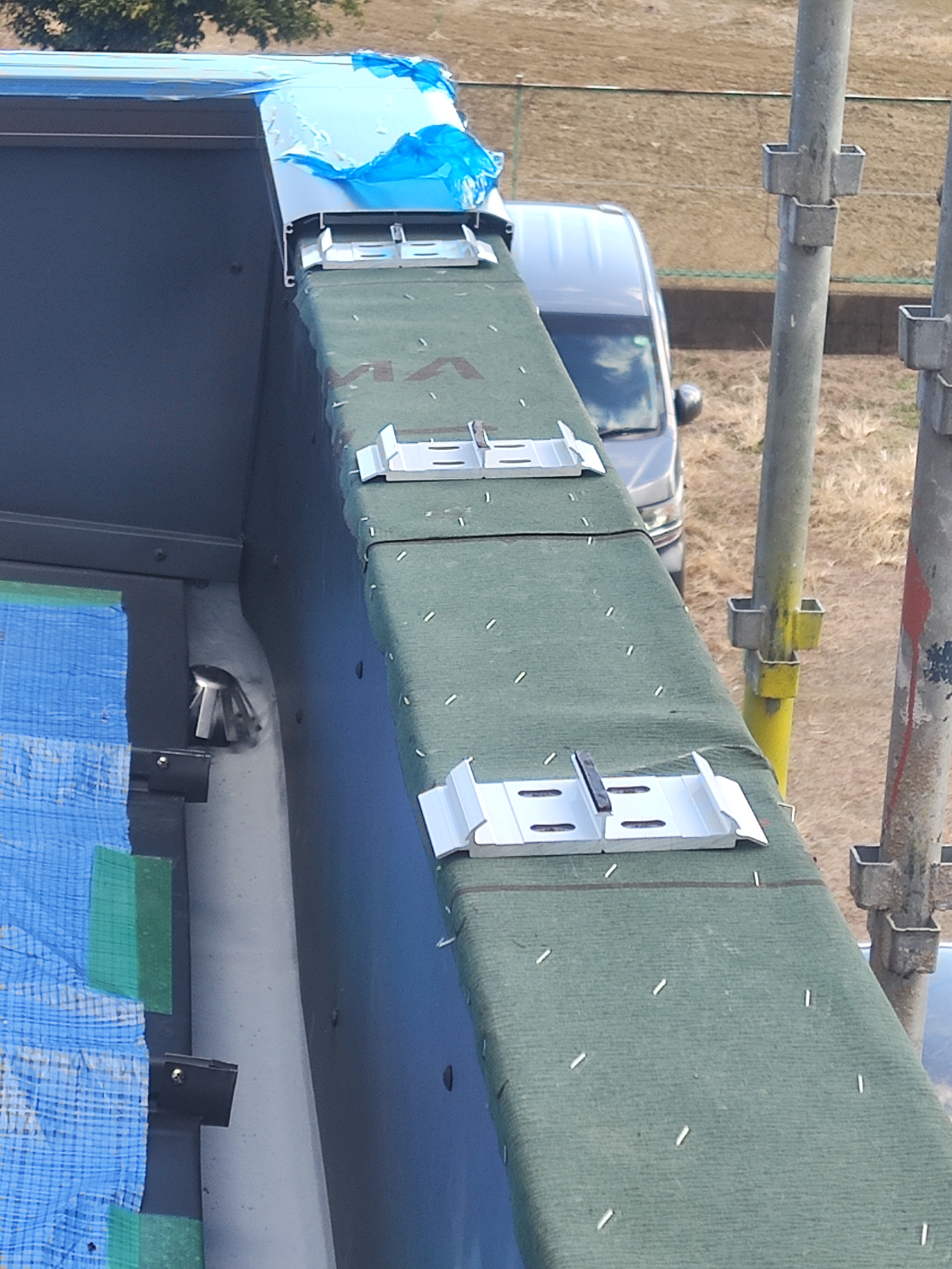 トタンの笠木で腐食がひどく、雨漏りがしていたのでアルミに取替